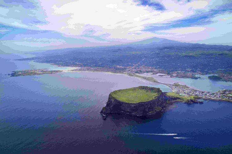 【城山日出峰】(参观约40分钟)由火山熔岩而成,山顶上的火山口如同一顶巨大的王冠,是世界教科文组织认证的世界自然文化遗产,也是济州的象征。2007年被联合国教科组织指定为世界自然遗产。