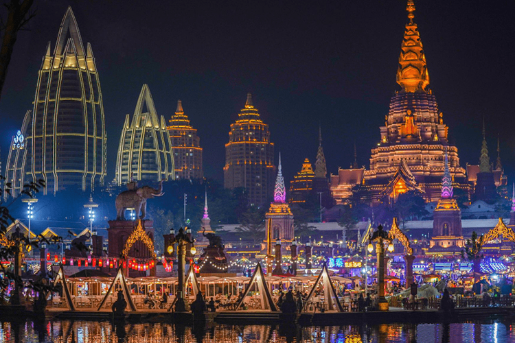 15:00-19:00前往版纳网红打卡地——告庄星空夜市、感受异国风情、游览六国水上集市,体验来自边境国度的热情、新奇。【告庄西双景】为傣语,汉意为“九塔十二寨”,旨在重现古时景洪盛景,打造一个繁华昌盛的“景洪 城中之城”。【大金塔】高度是 66.6 米,寓意一江连六国,又被称为大金塔,是告庄西双景的九塔之一。大金塔本身是以塔林的方式建造的,在主塔旁边有4座小的实心佛塔。在这4座小的佛塔四周,四周都有一只人面灵兽。四个门中间还供奉了不大相同的人物,每尊神前都会设蒲团,供给供奉者,【六国水上市场】是国内具有东南亚风情的水上市场,让中国人不出国门,也能在告庄体验到真正的六国风情,赠送水灯祈福:在告庄美仑美央的夜市下,虔诚的许下心愿(可填心愿卡),放下水灯让水灯把您的心愿带去远方,祈盼愿望成真!(当天晚餐不含,可在夜市自理当地特色小吃),返回入住酒店!