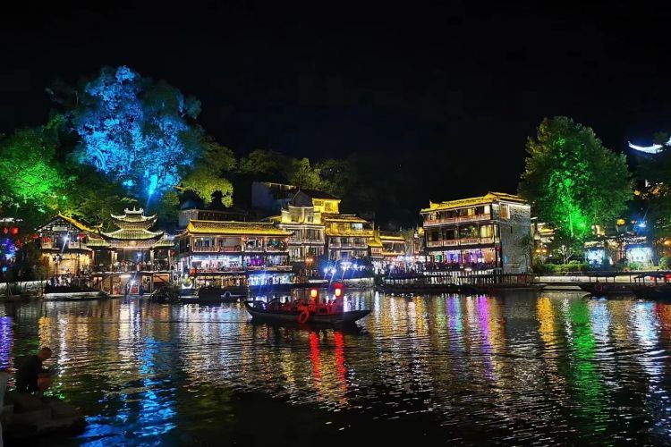 游览结束后乘车前往【凤凰古城】(注:凤凰古城不含九景门票,若因政府政策性变化,若需购票敬请自理),抵达【凤凰古城】前往凤凰古城农家船码头,体验《凤凰船说》(如遇景区提质改造或天气影响等不可抗力因素造成无法正常演出以及个人原因取消等,赠送项目不游不退):沱江是凤凰古城的母亲河,在古城区蜿蜒十余里,风光带犹如古城的水上画廊,她依着城墙缓缓流淌,世世代代哺育着古城儿女。坐上农家乌篷船,听着艄公的号子,看着两岸已有百年历史的土家吊脚楼,别有一番韵味。《凤凰船说》是沱江的水上户外游览项目。乘坐沱江农家船,聆听沱水两岸的故事,感受古城时代的变迁,让我们近水,亲水,悦水;让历史与现实,回归与向往,就这样来一次美满的实现;今岸与古船,新锐与悠远,就这样完美的交错。