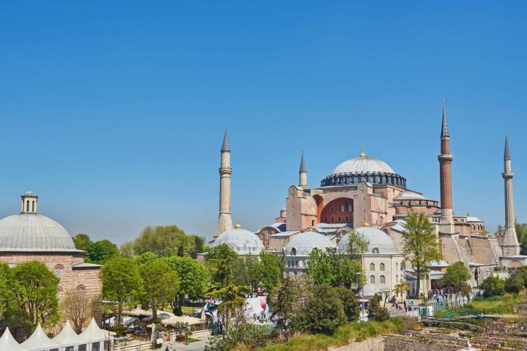 以下三个景点相连(步行即可抵达;圣索菲亚大教堂及蓝色清真寺每逢礼拜时不能内进参观,届时我们将调整参观时间):参观【蓝色清真寺】(约45分钟,入内需自备头巾),整个清真寺内部全部密密地贴着美丽的伊兹尼蓝色瓷砖,蓝色清真寺由此得名。一般清真寺只有四根唤礼塔,但它却有六根,是世界上独一无二的清真寺。寺外有一个大花园,可看到伊斯坦布尔最美丽的景色。参观【古罗马竞技场】,现在被称为苏丹阿合麦特广场,在该广场有三个纪念碑:塞奥道西斯的奥拜里斯克方尖碑、青铜制的蛇柱及君士坦丁奥拜里斯克方尖碑。外观【圣索菲亚大教堂】,它是拜占庭建筑艺术最出色的代表作,以其举世无双的圆顶著称,气势宏大。在罗马圣彼得大教堂建成前,它曾是世界最大的教堂。