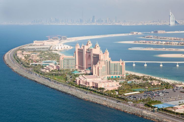 下午:【The Palm棕榈岛】乘单程轻轨电车进入,号称「世界第八大奇景」,以棕榈树为外型,岛上由50间豪华酒店、2500间沙滩住宅别墅、2400间面海住宅大厦、游艇会、水上乐园、餐馆、大型购物中心、运动设施、水疗设施组成。与正建的「The World世界岛」形成“姐妹岛”。外观最顶端的亚特。