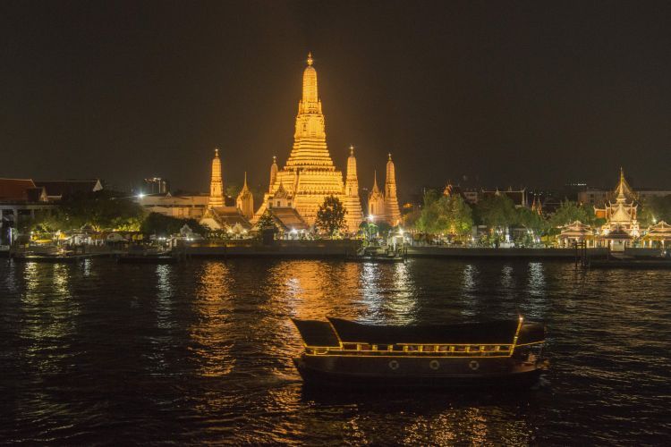 后乘车返回曼谷(车程约 2 小时),前往码头,乘坐【昭帕耶公主号游船游湄南河】 湄南河又名昭披耶河,有泰国“河流之母”之称。天色渐暗,华灯初上,穿梭在河面上的观光游船纷纷出航,傍晚的湄南河有与白日截然不同的另一种风情。 LIVE 演出泰国的老字号游船,现场更有爵士乐歌手驻场,游客也可以伴随着音乐一览曼谷标志性景点,惬意欣赏沿途美景。享用地道泰式料理与各国佳肴构成的无限量海鲜自助晚餐,欣赏湄南河两岸风光。