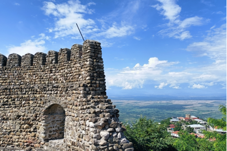 下午:前往西格纳吉城墙,登上老城墙(参观约20分钟),18世纪时,格鲁吉亚最后的一位国王Erekle为了保护当地人免受劫掠,也为了吸引亚美尼亚商人前来经商,下令兴建此城,有一圈城墙作为防御工事,城墙总长度超过4.5公里,一共有23座塔楼。从高处望能看到远处的景色,十分壮观。