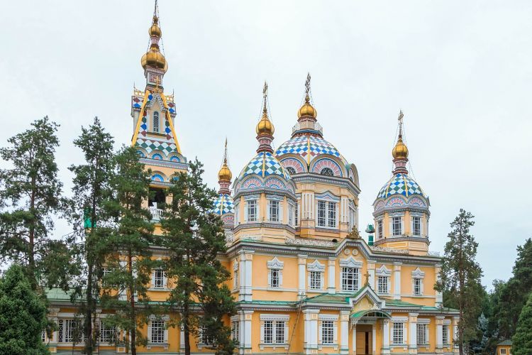 升天大教堂,也被称为曾科夫大教堂,是位于哈萨克斯坦阿拉木图的潘菲洛夫公园的俄罗斯东正教大教堂。它于 1907 年完工,据称是当时世界上第二高的木制建筑(全世界8个最独特的木造建筑之一 ),旁边是艺术品一条街,民族工艺品商店等。