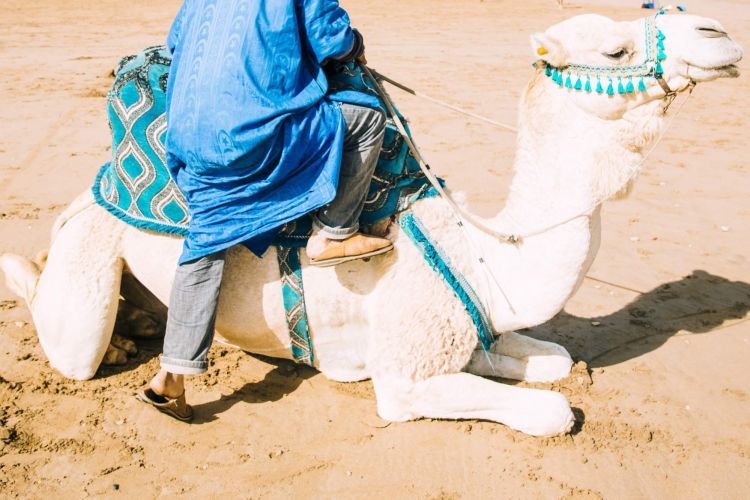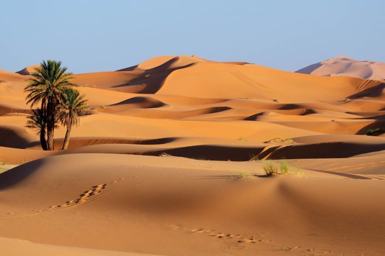 特别包含【体验黄昏日落骑骆驼深入撒哈拉腹地】(按照惯例,请支付牵夫小费1美金/人;注意:受天气影响,能否看到日落以当地情况为准),骑单峰骆驼穿越沙漠是深受游人喜爱的体验项目,围上头巾、穿上长袍,一副阿拉伯人的装扮,三五个人一组,在骆驼主人的牵引下,向沙漠深处走去。荒芜的沙漠中除了偶尔见到的骆驼草和零零星星的棕榈树外,便是满地的黄沙。驼队行走其间,构成了一幅天然的画作,画面壮阔而又细腻,色泽明快而又沧桑,显现出浩瀚沙漠的壮丽风光。