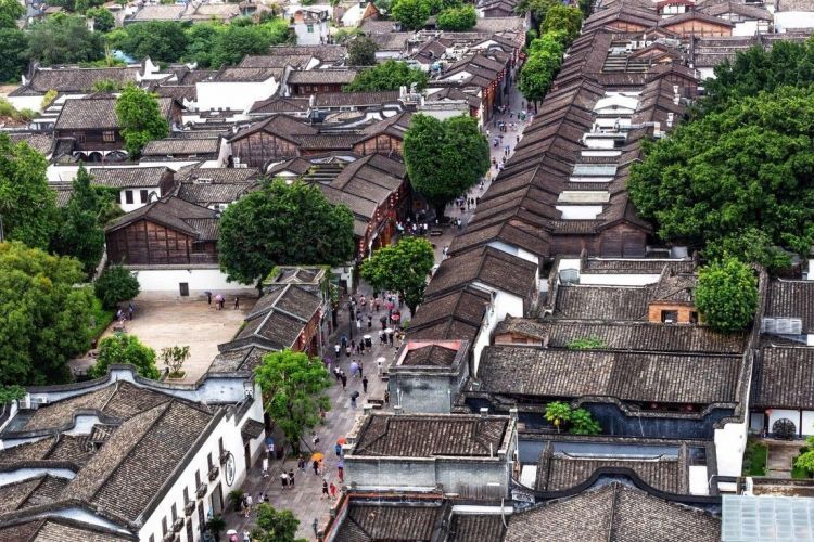 11:00打卡点【三坊七巷】这里是福州的历史文化的发源地,顾名思义,就是三个坊、七条巷。很多我们耳熟的名人,如林则徐、严复等都曾住在此处。进入【林则徐纪念馆】,屏墙左右两边的石拱门上,横额分别为“中宗宗衮”及“左海伟人”。纵向径直步行到最北边的林觉民/冰心故居,每一米都值得你的驻足。阡陌交错的商业街,每一条横着的巷子都值得进去一探究竟。建筑古色古香,招牌都以牌匾来代替,路上会遇到穿汉服的小姐姐们来打卡,强烈的古今文化的碰撞。这里还有二梅书屋、叶氏民居、尤氏民居等。沿着三坊七巷中轴线正对面就是老福州最古老商业街的存在“南后街”,别忘了在这里找找那棵高大的“心形”树,这可是网红经典打卡处,可与爱人闺蜜一起在此合影留恋。有无人机的伙伴也可在安全的前提下使用,白墙黑瓦建筑,俯瞰就像层层起伏的砖瓦波浪。