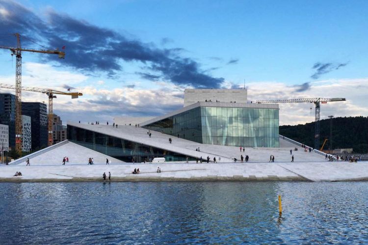 ●【奥斯陆歌剧院】,奥斯陆歌剧院于2008年建造完工,坐落于奥斯陆峡湾,临近中央车站,斜坡形的白色石头房屋顶,仿佛是矗立在峡湾中的巨大冰川,造型现代而又抽象。游客可以登上屋顶漫步,饱览奥斯陆市容美景。