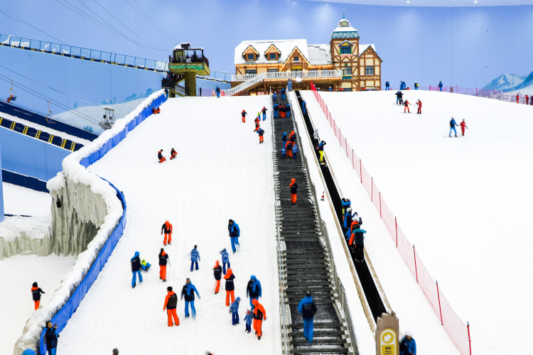 09:30 前往开始体验【融创热雪奇迹】(包含娱雪或滑雪 2 小时二选一)广州融创雪世界占地 7.5 万㎡,是迪拜 室内滑雪场面积约 3 倍,也是中国华南地区唯一的室内滑雪场。