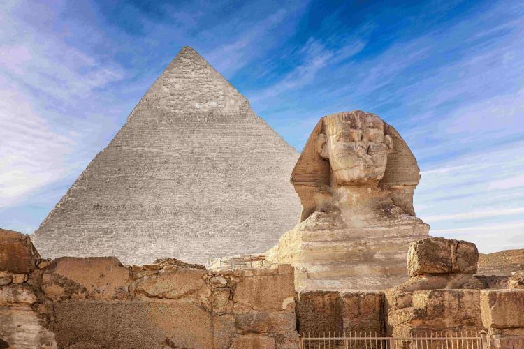 参观【吉萨金字塔群】(约1.5小时,如需进入金字塔内自备当地货币及自行购票即可,以当地情况为准,出入请务必注意安全),古埃及文明的象征,这是古代世界七大奇观中最古老的遗址,不仅是埃及,也是世界上最受欢迎的景点之一。建筑上的超高难度再加上各种数字上的巧合,让这建筑充满了神秘色彩,游客到此就是真真切切的感觉建筑的宏伟。
