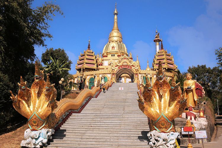早餐后,游览【勐焕大金塔】 传说“释加牟尼”生前转世为金鸡时曾生活于此地,整座塔高76米,塔底基座直径50米,造型为八角四门空心佛塔,下3层为空心大厅。塔身主体为钟型大塔,第二、三层各建有小塔8座,第四层外平台建有8个精美的花瓶塔。基座之上的主心柱以大钟和13个钵上垒砌而成,最高点戴有重达2.3吨的大金顶,堪称中的一个金佛塔,亚洲第一空心佛塔。高耸挺拔,雄伟壮观,气势恢宏。随后游览【芒晃古镇】,位于金塔脚下,孔雀湖畔,是芒市东部旅游集群“七星傣寨”之一,属于典型的坝区傣族世居村寨,傣族人民在这方山水里繁衍生息,他们汲取山水之精华,采撷土地之芳香,融入在人间草木里,让最质朴而美好的生活气息一直氤氲在村寨的上空,保留着一份纯净的人文生活画卷。